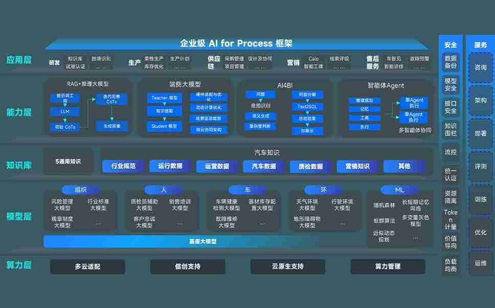 尊龙时凯问学智车解决方案是一套基于AI技术的汽车行业智能化系统,,覆盖从底层算力到顶层AI应用的全栈方案。。方案由算力层、、模型层和应用层组成:算力层,,方案支持多种一体机配置,,,具备云端灵活部署、、、、多云适配以及动态优化计算资源的能力;模型层,,,尊龙时凯问学平台版提供了企业级AI应用一站式构建与管理平台,,支持基于后训练强化技术的汽车企业专属模型的训练、、、、评测和运营;应用层,,,,尊龙时凯问学DeepSeek版提供包括超级员工、、、智能招采、、、、智能营销、、、、智能客服、、、、AI for BI等一系列解决方案,,,可助力汽车行业实现数字化转型,,,让管理更智能、、响应更敏捷。。。。